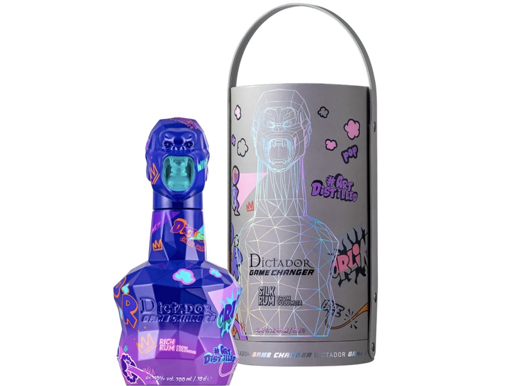 Dictador Game Changer Dark Blue je výjimečný prémiový rum, který propojuje tradiční destilační mistrovství s moderním uměním. Tento unikátní blend vznikl ve spolupráci kolumbijské značky Dictador a francouzského umělce Richarda Orlinskiho, jehož kreativní vizionářství dodává rumu nezaměnitelný design a sběratelskou hodnotu.